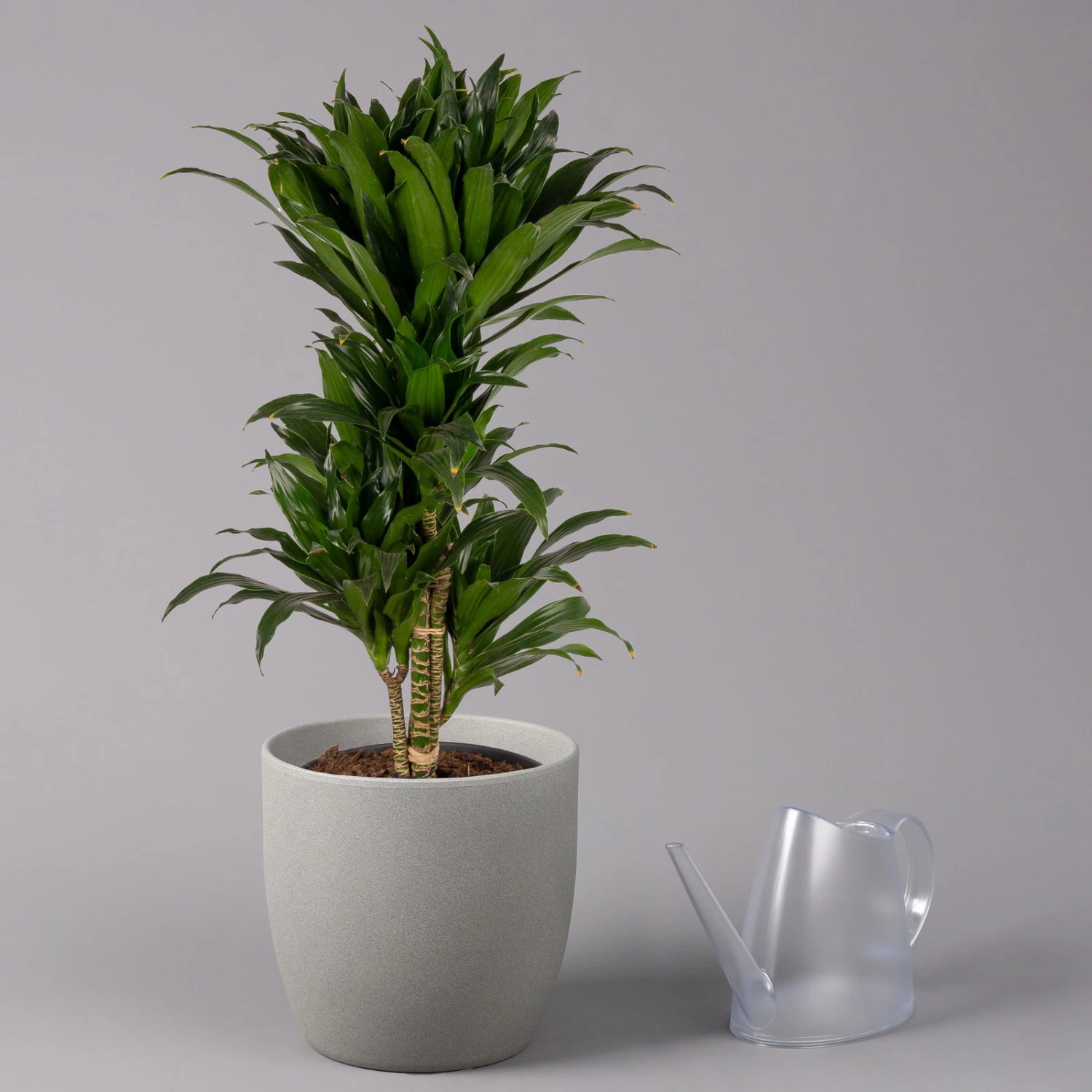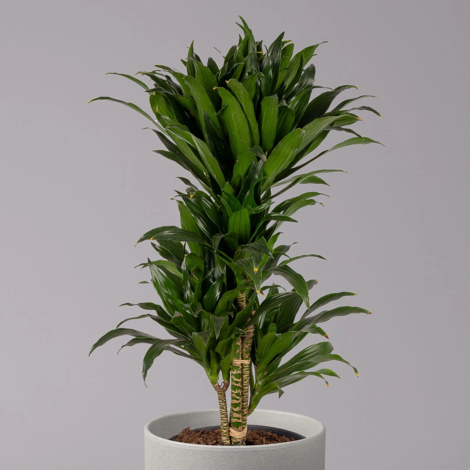 Die Dracaena fragrans ‚Compacta‘ fällt durch ihren dichten und verzweigten Wuchs sowie durch die sattgrüne Blattfarbe auf. Diese Zierpflanze gehört zu den Drachenbäumen und stammt aus subtropischen und tropischen Regionen. Sie können Drachenbäume kaufen, um diese Gewächse in einem beheizten Wintergarten oder direkt im Wohnzimmer zu pflegen. Auch als Büropflanze eignet sich die Dracaena ‚Compacta‘ sehr gut, nicht zuletzt, weil das Gewächs mehrere Schadstoffe effektiv aus der Luft herausfiltert. An die Pflege stellt die Pflanze keine hohen Ansprüche und begnügt sich mit moderaten Wassergaben und sparsamer Nährstoffversorgung. Am besten gedeiht die Dracaena ‚Compacta‘ an einem ordentlich ausgeleuchteten Standort, jedoch ohne oder mit nur wenig direkter Sonneneinstrahlung.