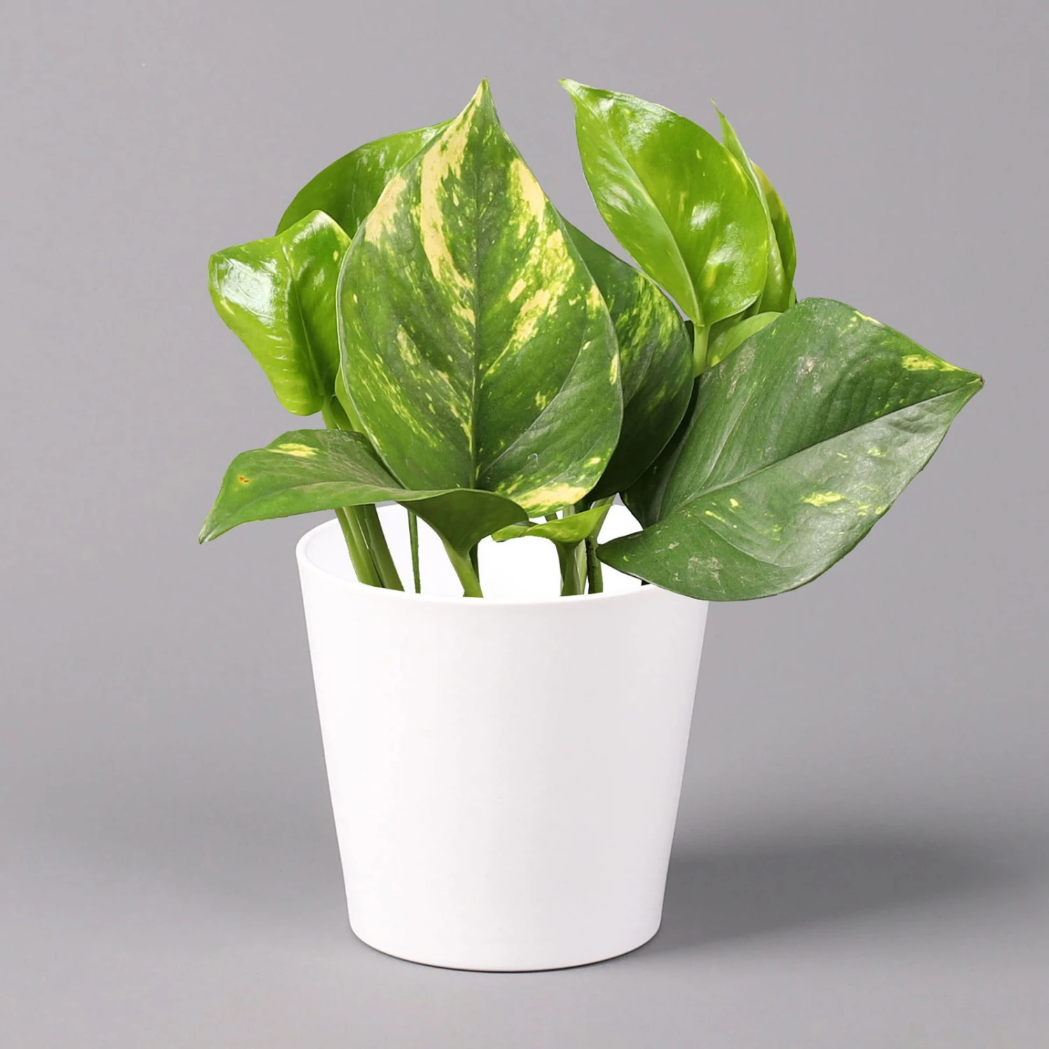 Jede Pflanze wird im Pflanztopf mit 12 cm Ø und Keramiktopf Dallas mit 14cm Durchmesser in weiß matt geliefert.