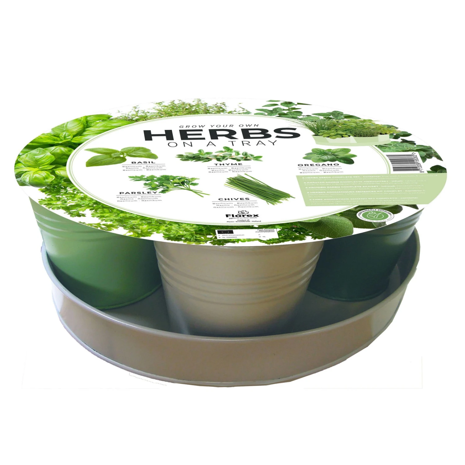 Petersilie, Oregano, Basilikum, Schnittlauch und Thymian – diese schmackhaften Küchenkräuter bauen Sie ganz einfach in Ihrer Küche an. Das praktische Set enthält neben dem Saatgut und der Anzuchterde noch ein dekoratives Tablett sowie eine übersichtliche Schritt-für-Schritt-Anleitung für eine erfolgreiche Pflege der Gewürzkräuter.